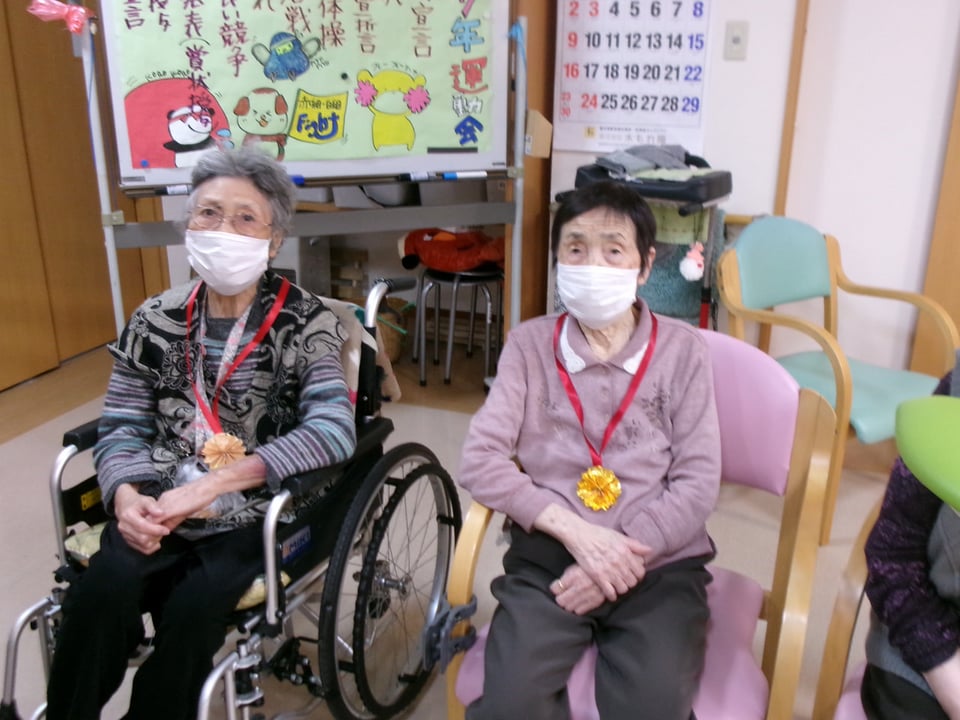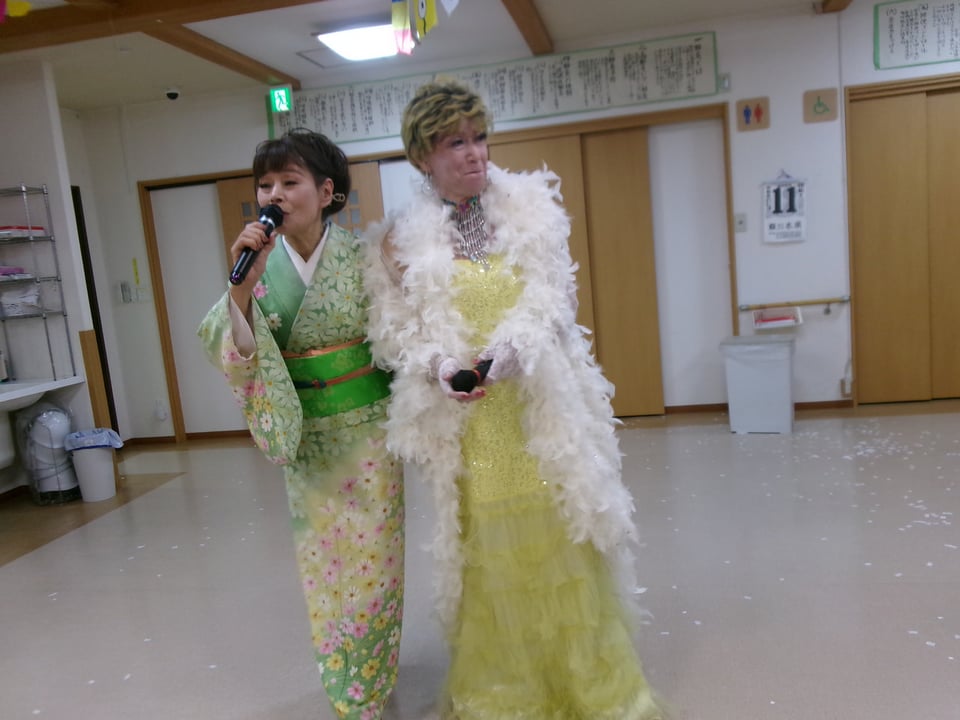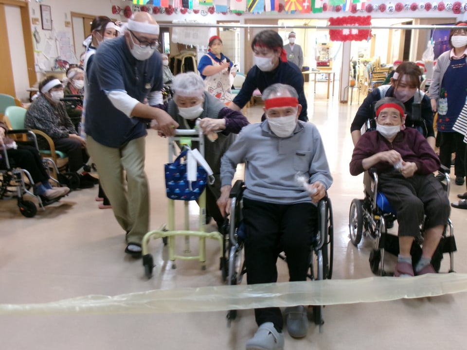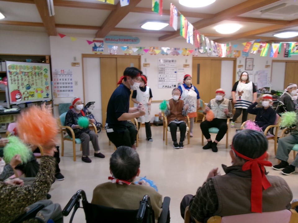 このページ内の目次 11月に入りだいぶ寒くなりました。皆さまお風邪にお気をつけてお過ごし下さいませ。昨日は誕生会という事で植正まさとし様にお越しいただきました。素敵な舞踊な歌を披露していただきました。とても楽しい内容のステージでした(^_^)またのお越しを心よりお待ちしております!そして本日は運動会を開催致しました。応援合戦に続き玉入れ、パン食い競争を今回も盛り沢山の内容の運動会でした!今回の勝者は5年連続で白組となりました!赤組さん来年こそ優勝めざして頑張って下さい!本日もお疲れ様でした! トップに戻る 前へ 11/7 木もれ陽スタイル☆
