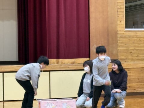 はしごをくぐった後は借り物です!紙に書かれたお題を借りてきます!