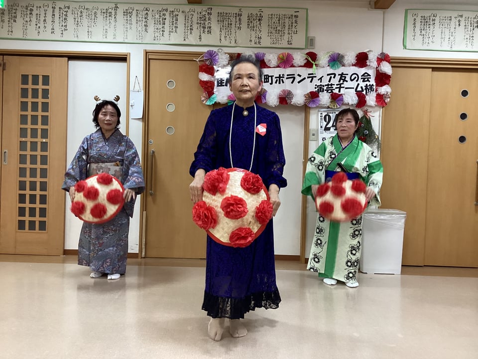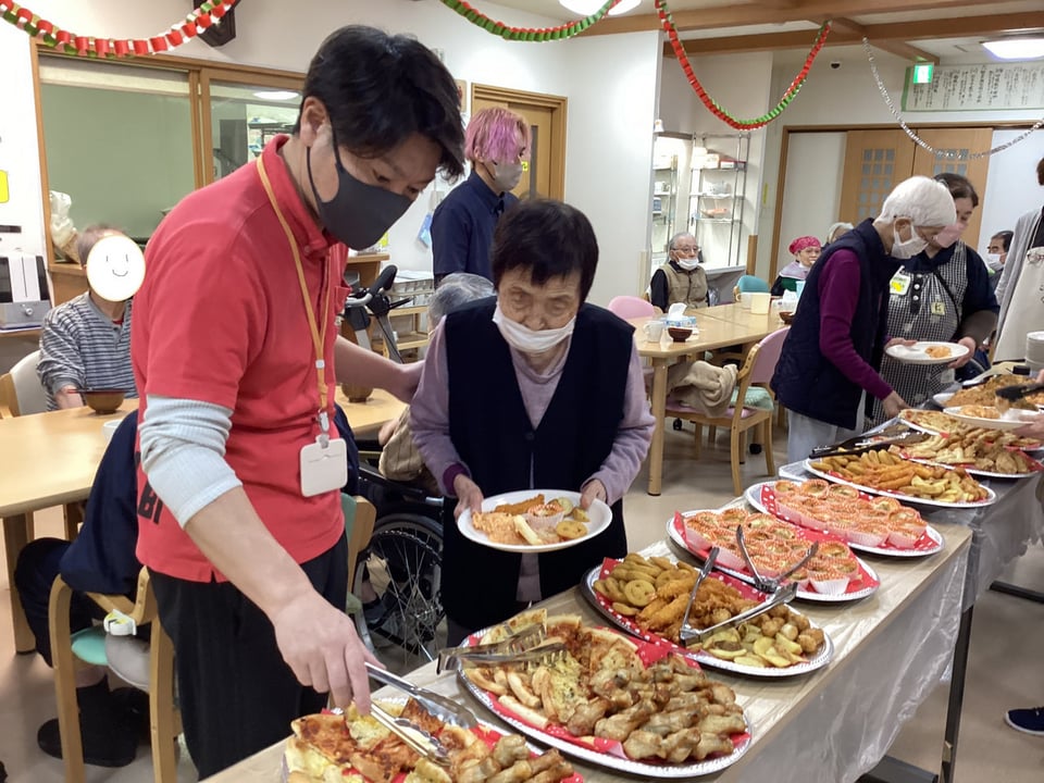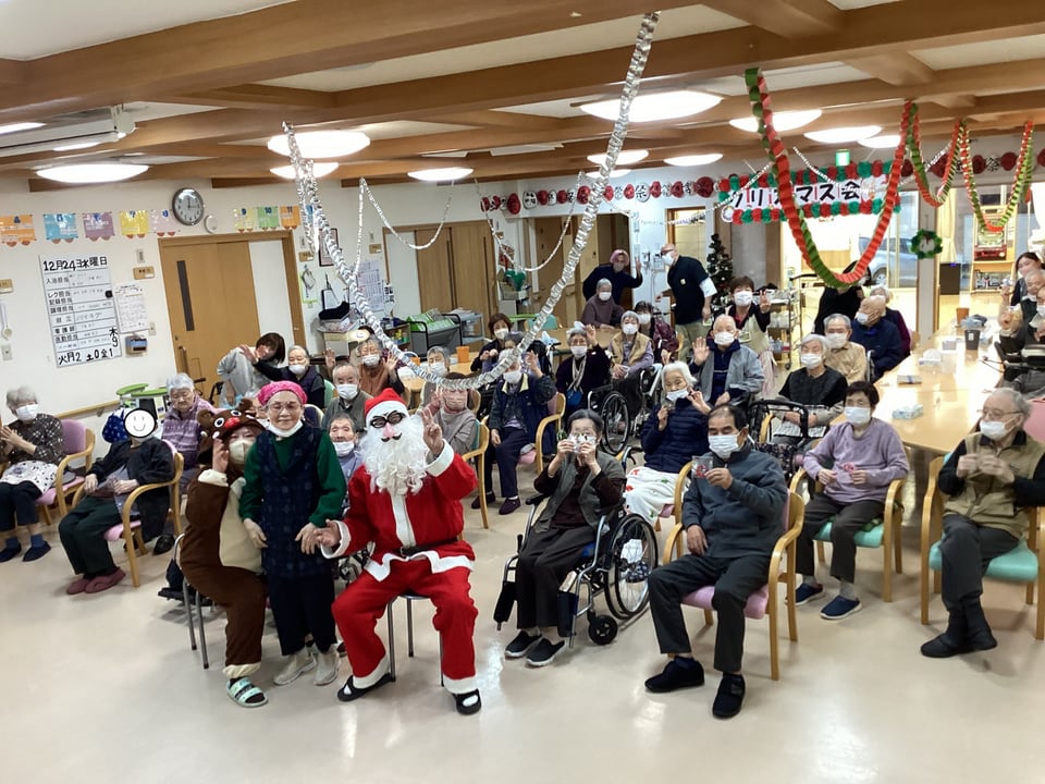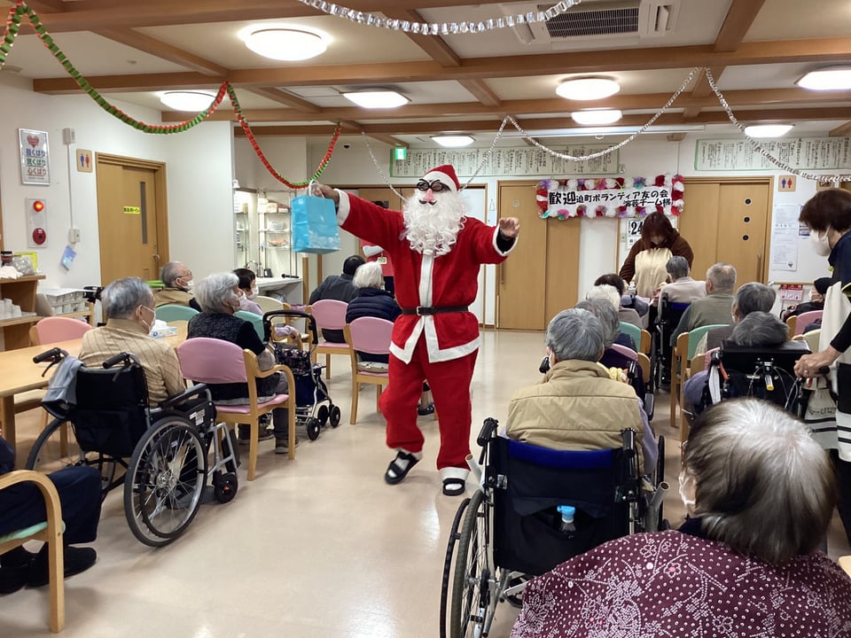 このページ内の目次 みなさんこんにちわ(^O^)本日はクリスマスイブです☆彡本日木もれ陽ではクリスマス会を開催致しました♪お昼はクリスマスバイキングを行いました🍽利用者様も沢山のごちそうに喜んでいただけたようでした!(^^)!午後はボランティア『迫町ボランティア友の会演芸チーム』様にお越しいただきました。今回も素敵な舞踊を披露していただきました。『迫町ボランティア友の会演芸チーム』様本日も素敵な時間をありがとうございました。そしてその後、サンタとトナカイが登場!素敵なプレゼントを利用者様にプレゼントして下さいました!一つ一つ手作りでスタッフが作りました!心のこもった贈り物に利用者様がたも喜ばれていらっしゃいました。今年も楽しいクリスマス会となりました♪皆様本日お疲れ様でした! トップに戻る 前へ 12/23 木もれ陽スタイル☆