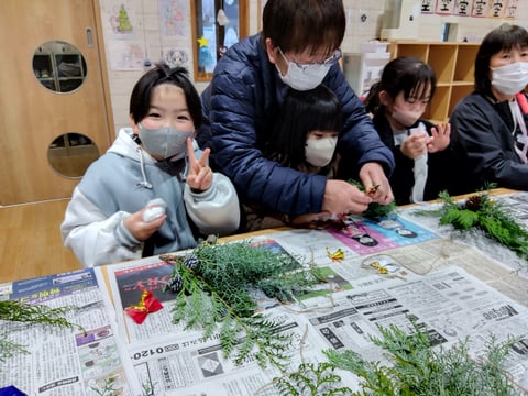 12月3日は地域の方をお招きし子どもたちと一緒に『スワッグ』つくりを行いました!