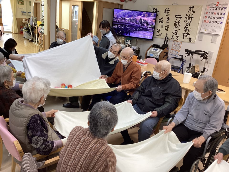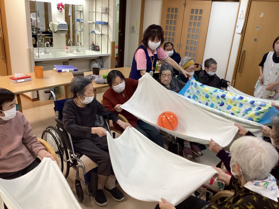 このページ内の目次 2月に入り暖かい日も時々はあり、春を感じる時もございます。あと何回雪が降るのかな?と思いつつ最近は過ごしております(^^♪今日の活動を報告致します!今日のレクリエーションは『ボール横断ゲーム』を行いました。バスタオルの上を様々なボールを端から端まで届けるゲームです。呼吸を合わせてタオルを上げたり下げたりし、ボールを素早く送っていただきました(*^^*)バスタオルがバサバサする度に波が打っているようで、見応えもあり、お楽しみいただけたのではないのでしょうか?本日もお疲れ様でした☆彡#デイサービス#登米市#中田町#石森#レクリエーション#サ高住#2月#ボール#バスタオル トップに戻る 前へ 2/4 木もれ陽スタイル☆