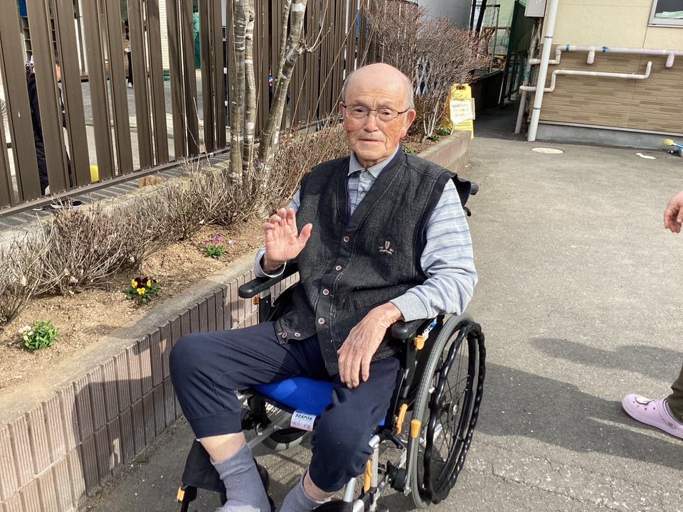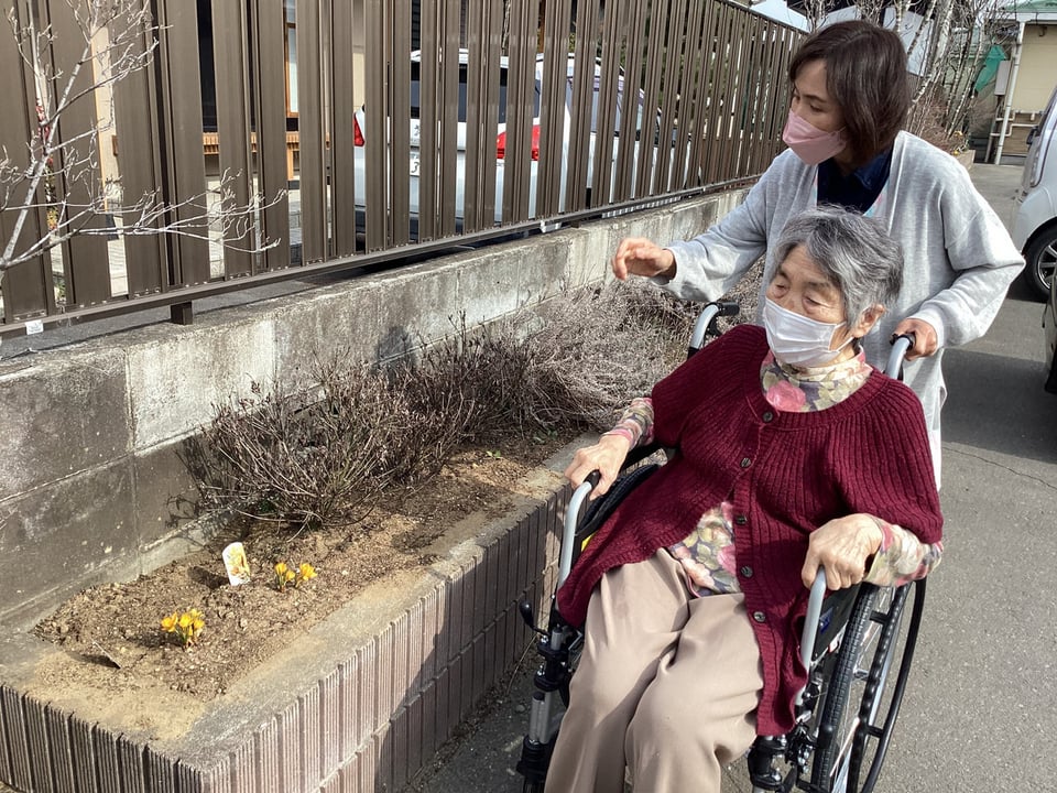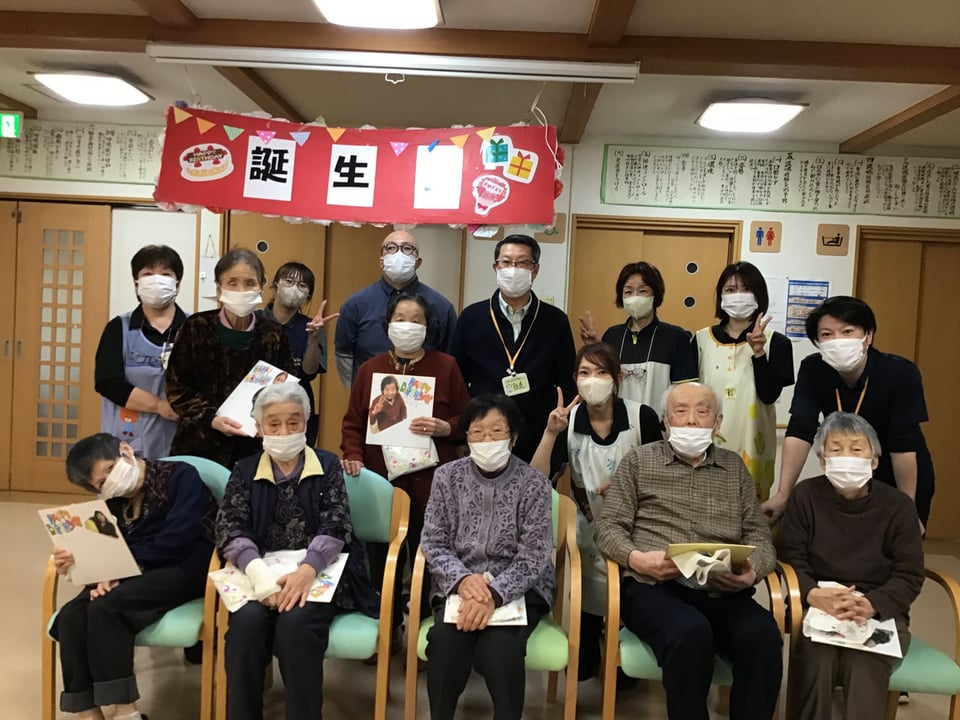 3月生まれの利用者様おめでとうございました。本日は天候も良かったので前の駐車場を皆様とお散歩しました。